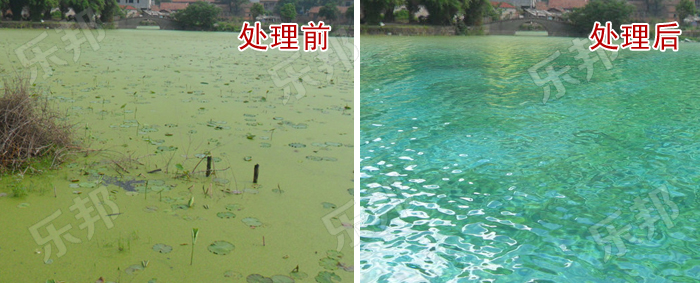 長春某湖水使用樂邦聚合氯化鋁鐵產(chǎn)品前后對比圖: