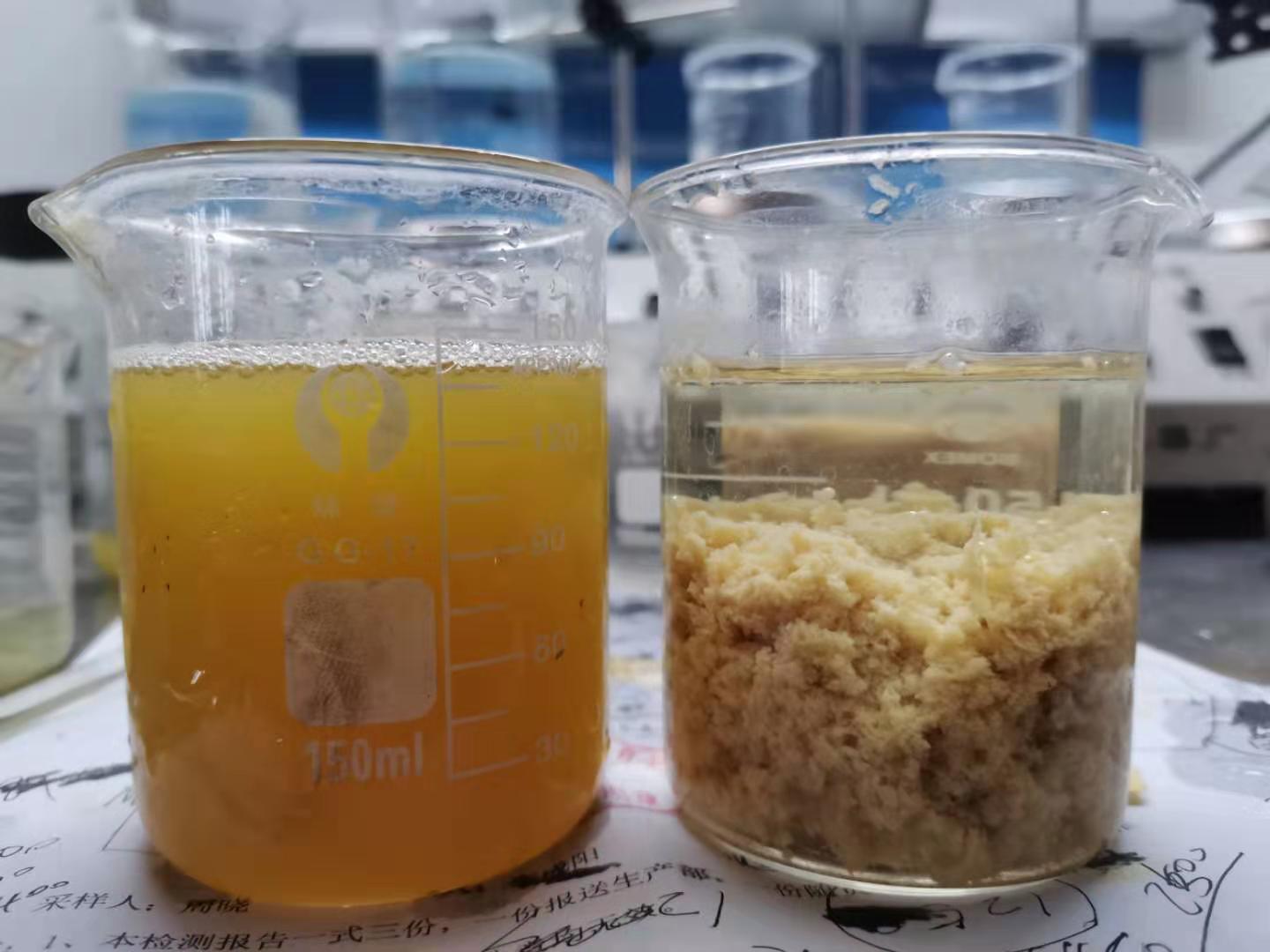樂(lè)邦聚合氯化鋁廠家收到赤峰客戶寄來(lái)的葵花油廠廢水呈黃色,濁度高,PH 8,客戶要求固液分離,出水清澈。樂(lè)邦聚合氯化鋁廠家的技術(shù)人員采用聚丙烯酰胺、聚合氯化鋁鐵配合使用后,處理效果完全達(dá)到了客戶要求。