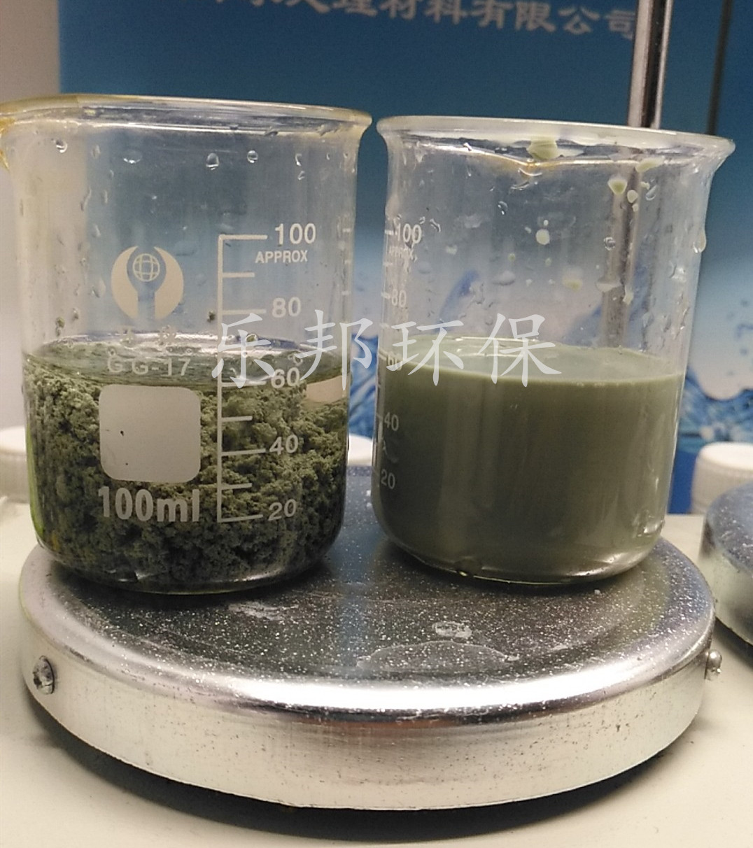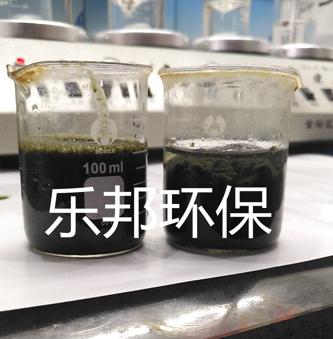 樂(lè)邦聚合氯化鋁廠家收到客戶寄送水性油漆廢水水質(zhì)呈現(xiàn)藍(lán)色,PH 值6(弱酸),客戶要求絮凝沉淀、固液分離,脫色。樂(lè)邦聚合氯化鋁廠家的技術(shù)人員采用陽(yáng)離子聚丙烯酰胺、聚合氯化鋁、片堿、活性炭配合使用后,處理效果完全達(dá)到了客戶要求。