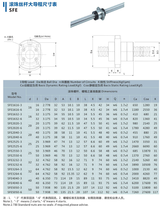 普通規(guī)格有:SFU1204、1605 1610 2005 2010 2505 2510 3205 3210 4005 4010 5010 6310 8010